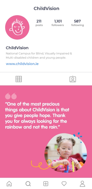 In all our work for ChildVision, we strive to capture and reflect the sense of joy and playfulness that is integral to the lives of these children. Our branded communications aim to convey the warmth, positivity, and creativity that ChildVision brings to their young lives.