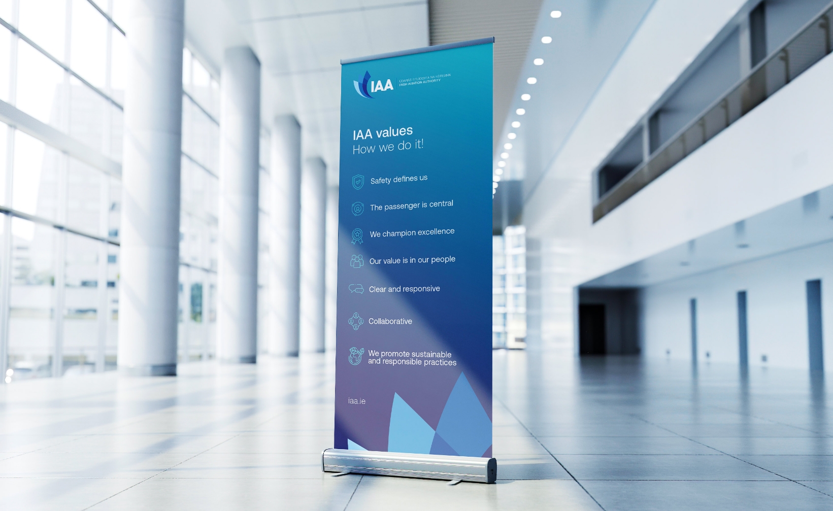 Taking inspiration from the migratory Lapwing bird, which holds a cultural and ecological significance in Ireland and features prominently in literature, poetry, and folklore, we incorporated feathered shapes resembling the bird’s head feathers into the refreshed IAA identity. This redesign establishes a strong global presence while connecting to aviation and Irish heritage.